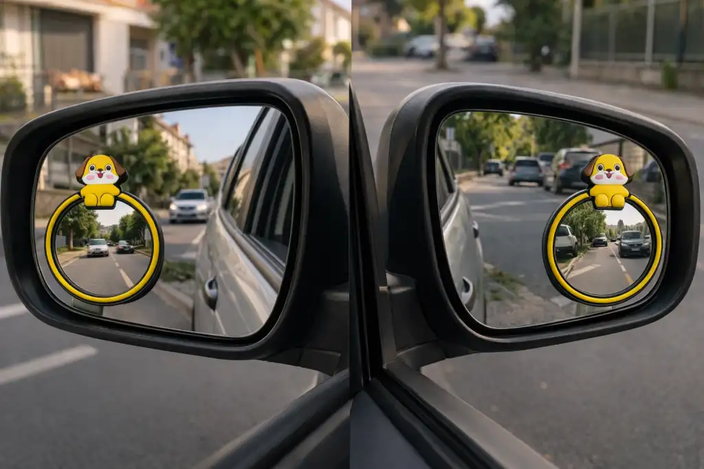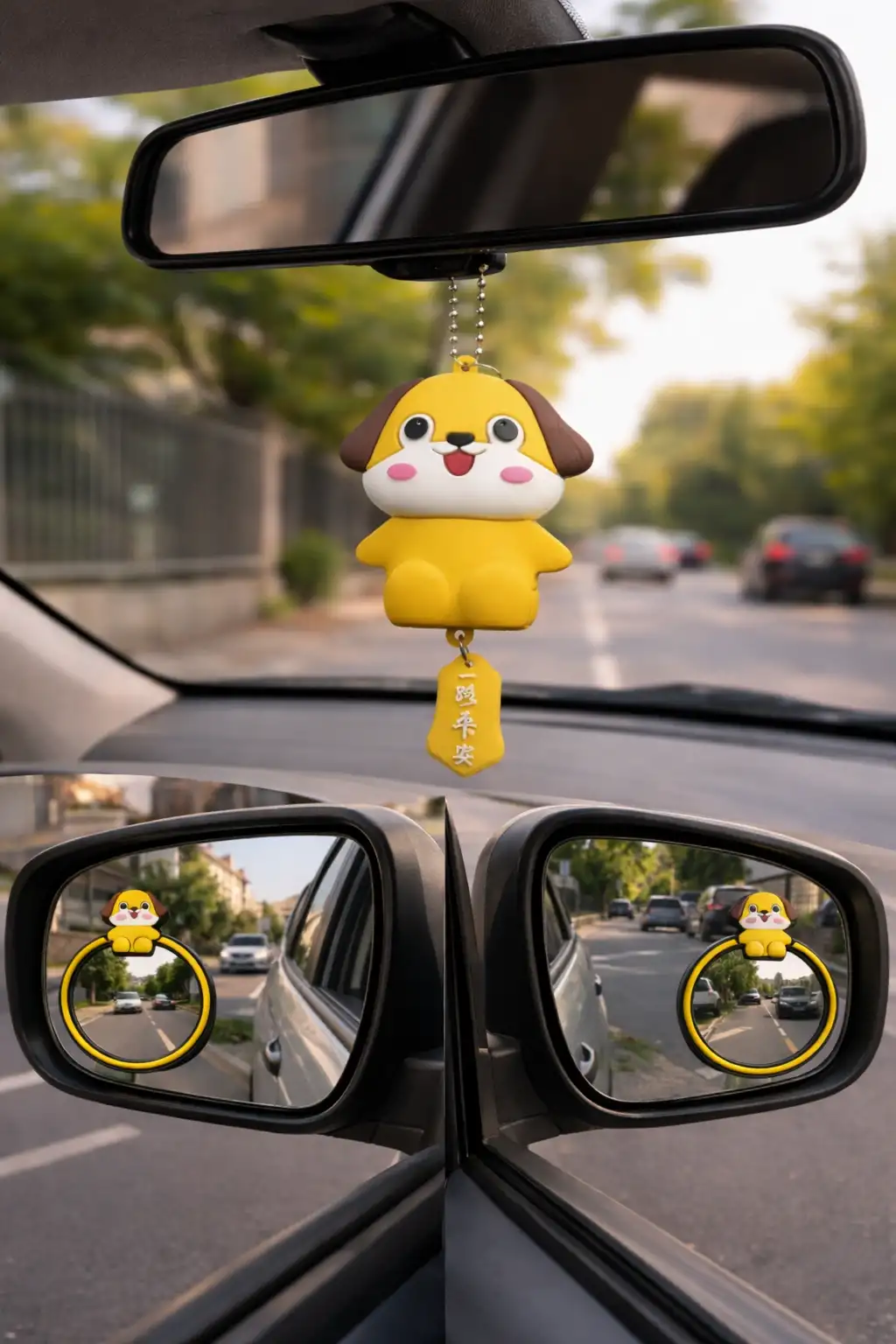 2’li Kör Nokta Aynası + Sevimli Ayna Süsü Seti, sürüş sırasında maksimum görüş açısı sunarken aracınıza eğlenceli ve estetik bir dokunuş kazandırır.