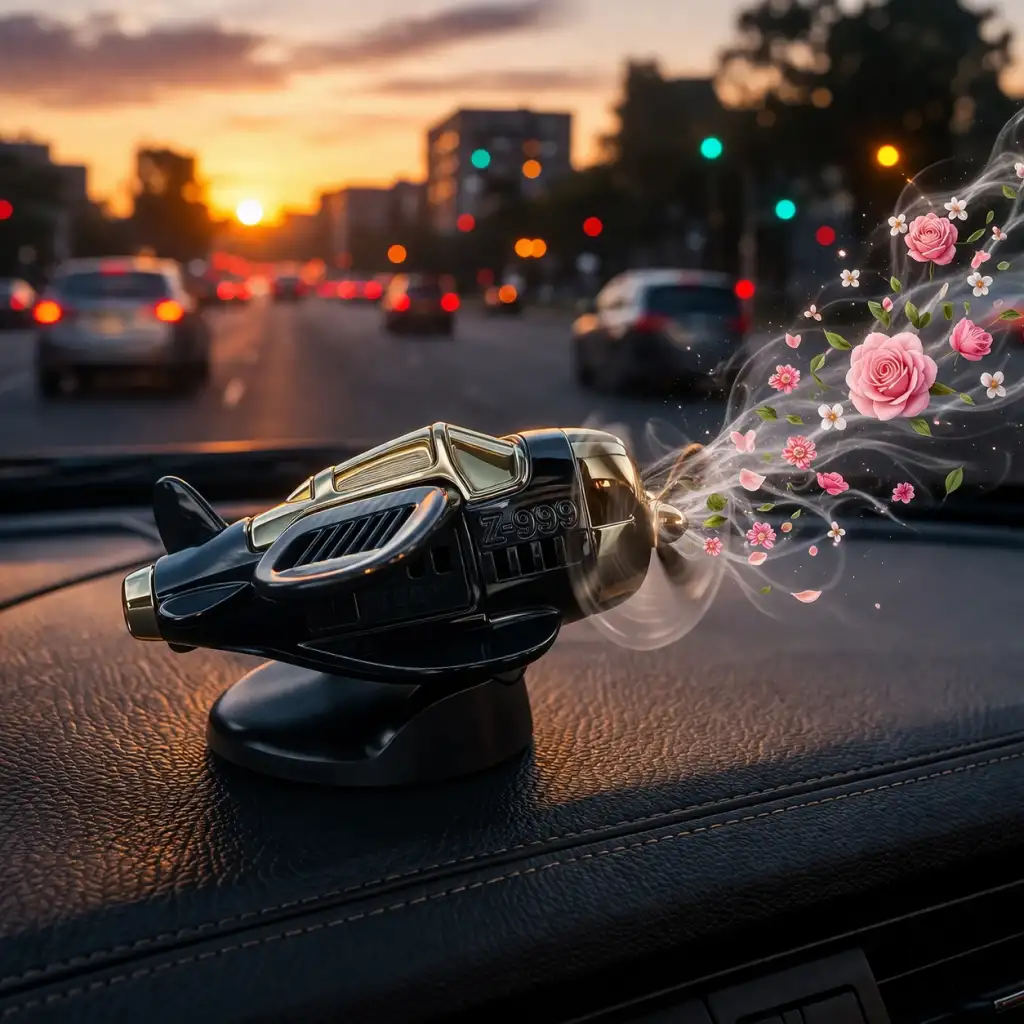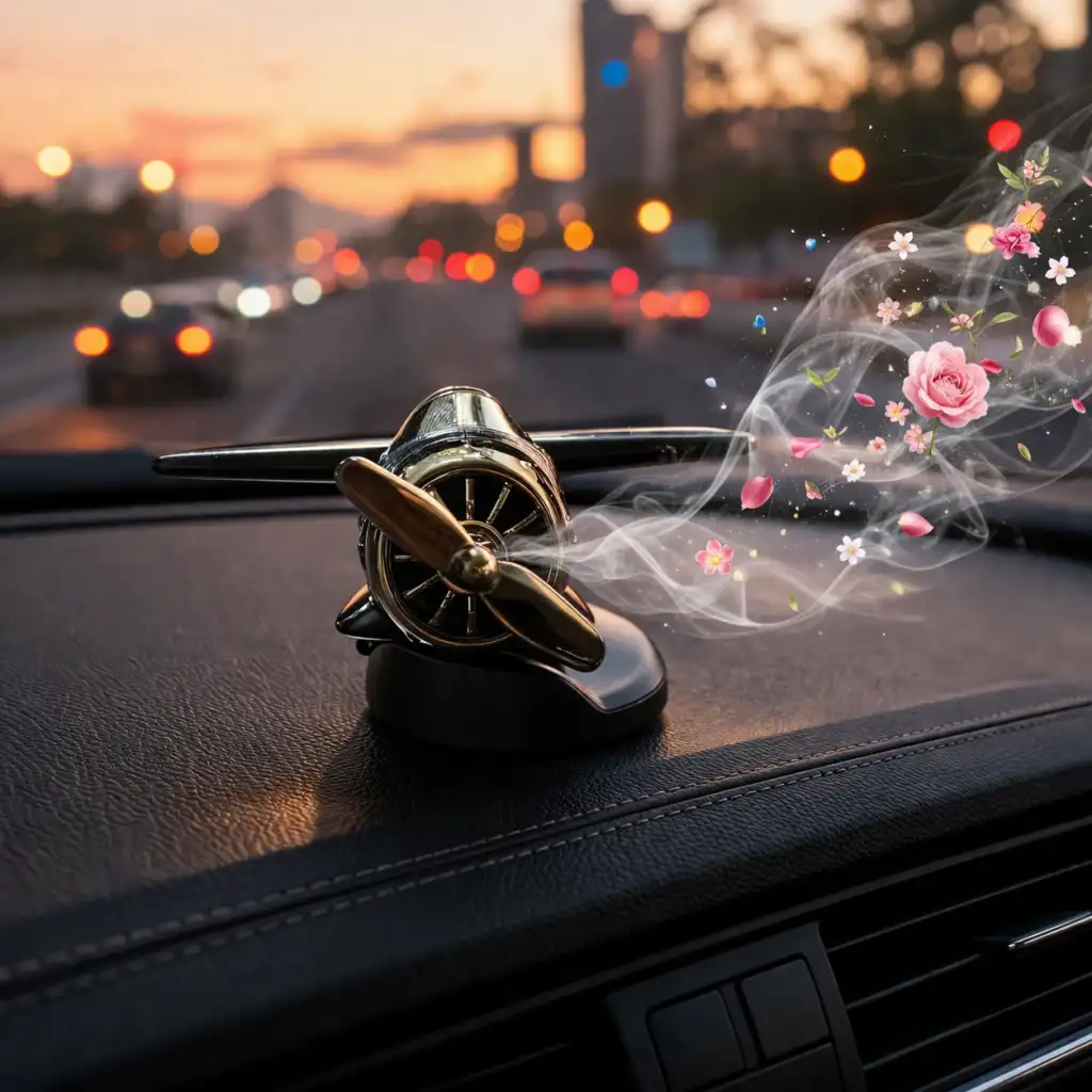 Güneş enerjisi ile çalışan pervaneli mini siyah uçak, hem dekoratif hem fonksiyonel bir araç aksesuarıdır. Torpido üstüne yerleştirilerek kullanılır. Güneş ışığına maruz kaldığında pervane otomatik olarak dönmeye başlar ve içindeki özel koku ortama yayılır.