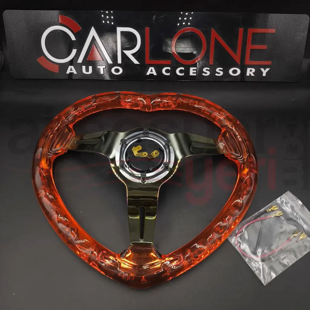 Aracınıza tarz ve şıklık katmak için tasarlanmış Kalpli Şeffaf Kırmızı Epoksi Direksiyon, estetik görünümü ve yüksek dayanıklılığıyla öne çıkar.