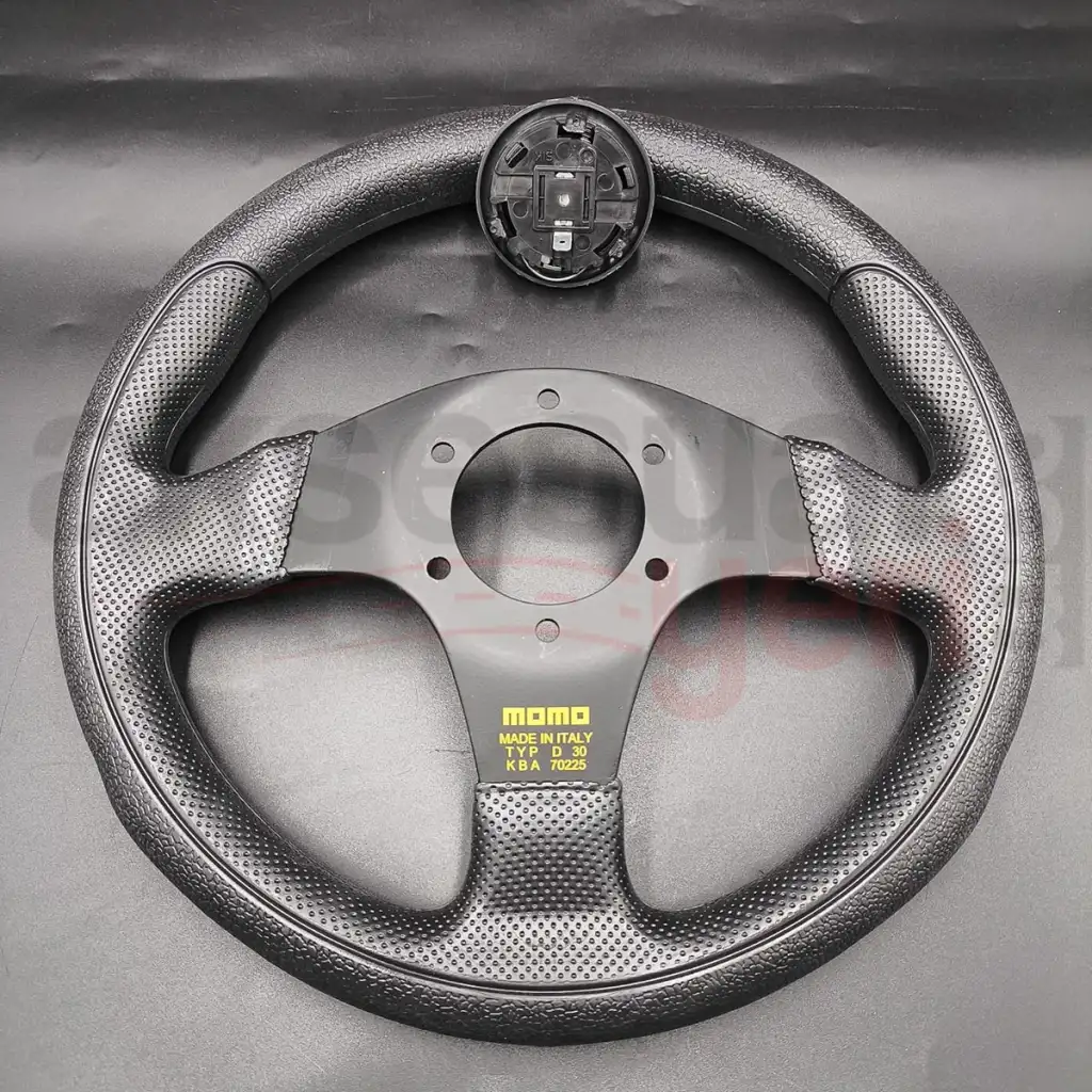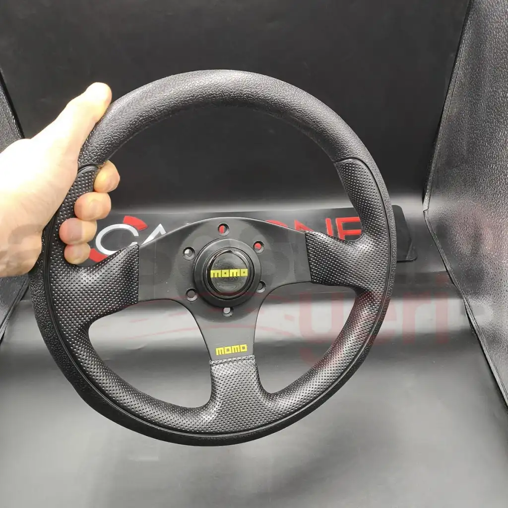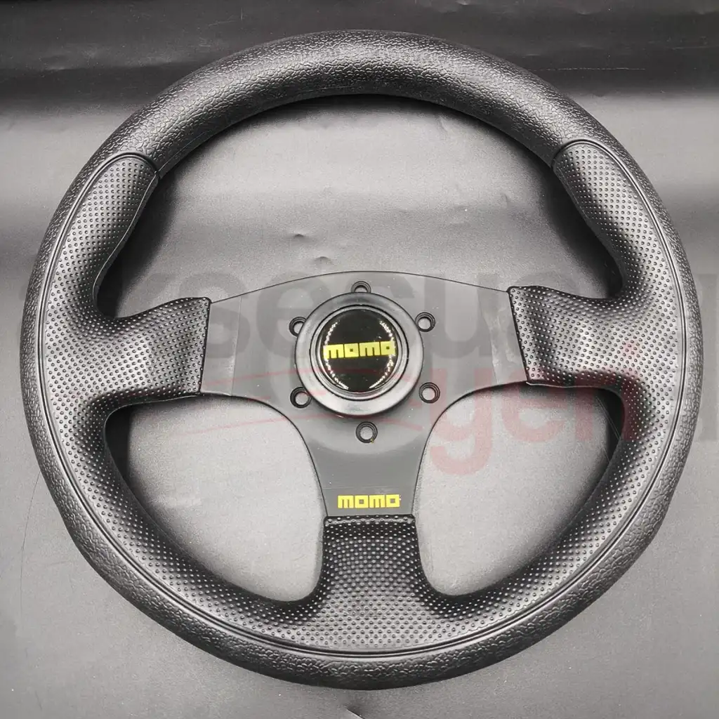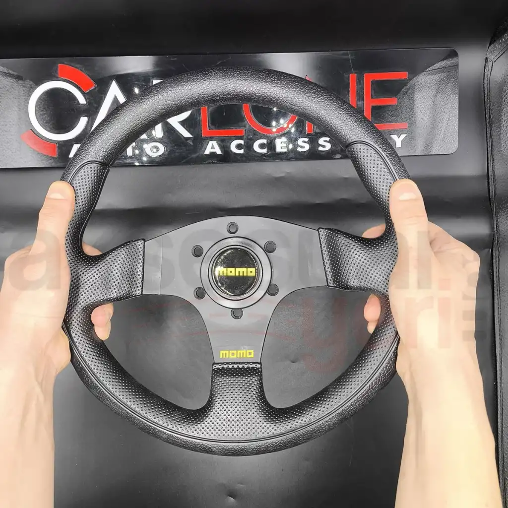 Momo 30 cm Spor Yarış Direksiyonu, kompakt yapısı, ofsetsiz tasarımı ve noktalı, kaymaz deri yüzeyiyle maksimum tutuş sağlar. Dayanıklı gövdesi ve sportif görünümüyle hem modifiye hem performans araçları için mükemmel tercihtir.