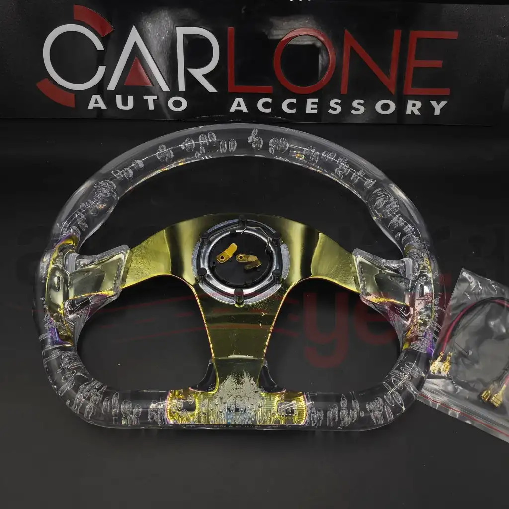 Göz Alıcı Tasarım: Şeffaf baloncuklu yapısı ve parıltılı detaylarıyla, bu direksiyon simidi her bakışta büyüler.