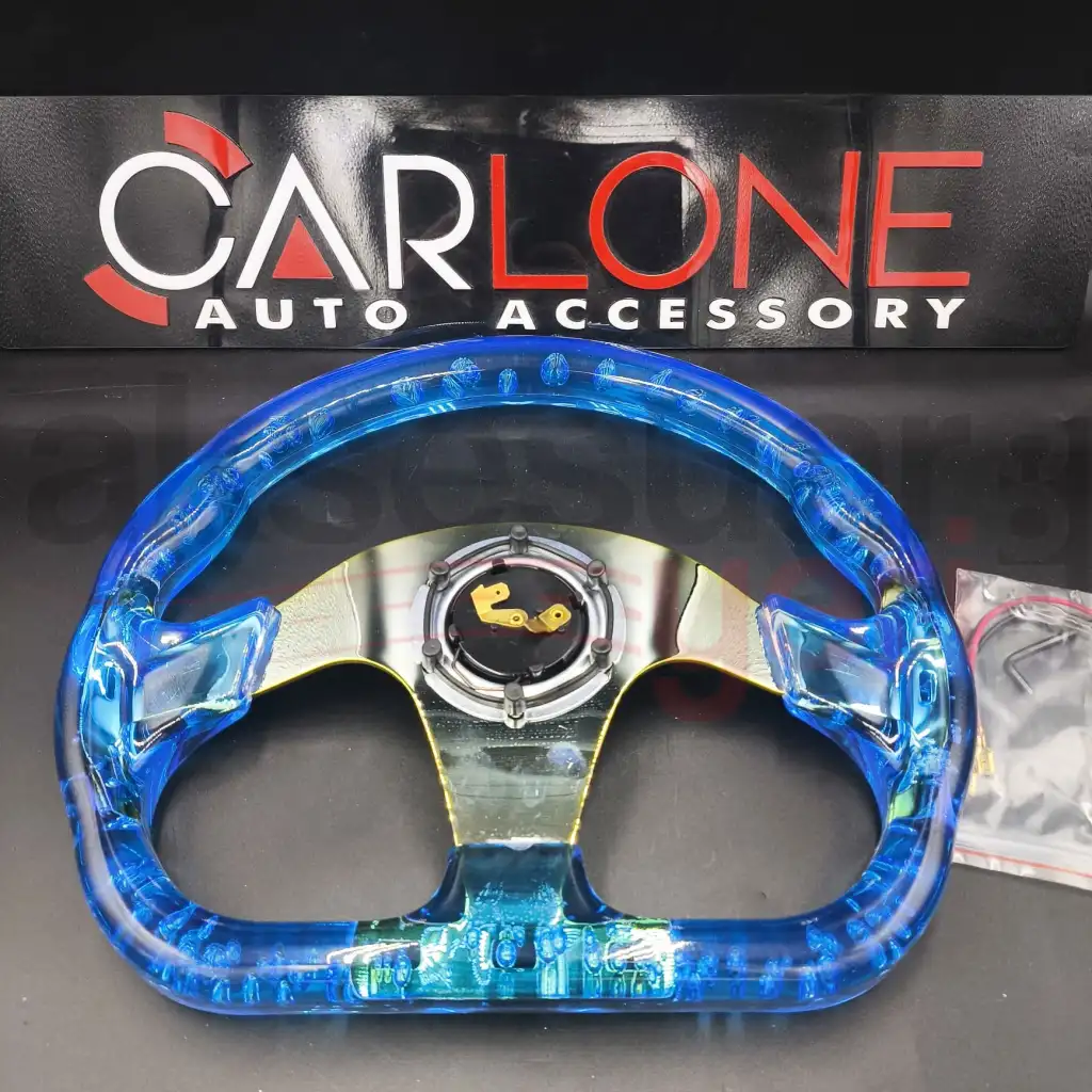 Göz Alıcı Tasarım: Şeffaf baloncuklu yapısı ve parıltılı detaylarıyla, bu direksiyon simidi her bakışta büyüler.