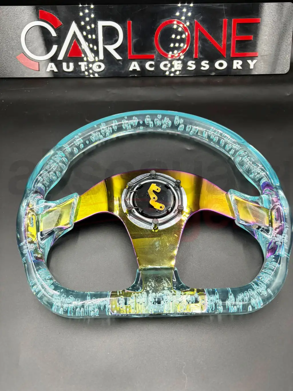 Göz Alıcı Tasarım: Şeffaf baloncuklu yapısı ve parıltılı detaylarıyla, bu direksiyon simidi her bakışta büyüler.