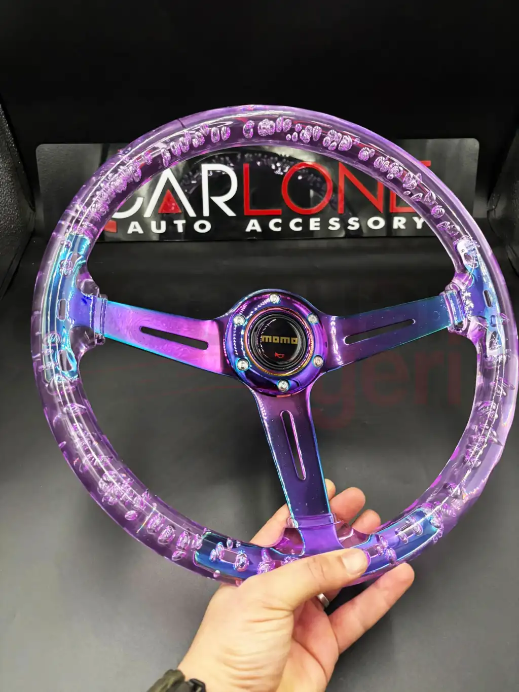 Şeffaf Epoksi Direksiyon Momo 35cm Kabarcıklı Direksiyon Mor Renk