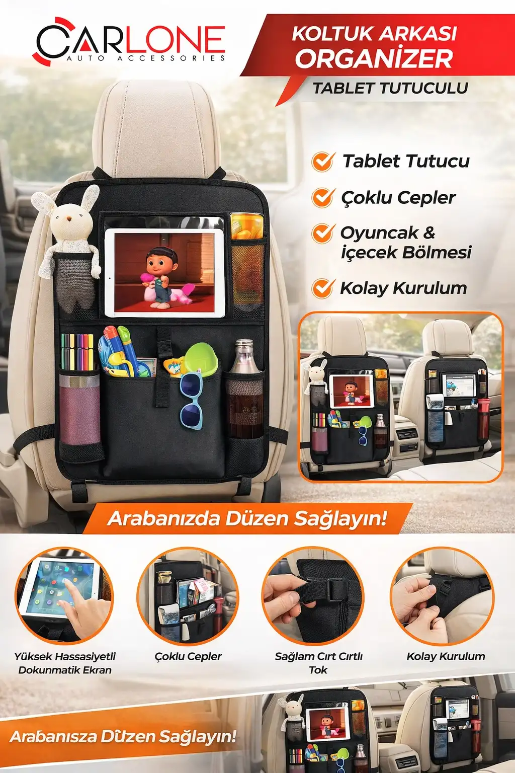 8 Cepli Araba Koltuk Arkası Eşya Düzenleyici Organizer Araç Bagaj Çantası Oto Içi Çanta Aksesuar
