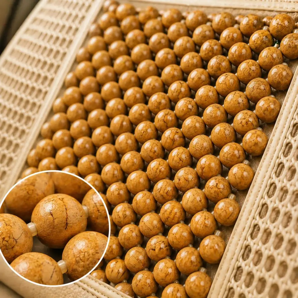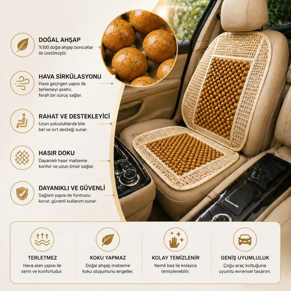 Bambu boncuk yapısı sayesinde hem şık hem de sağlıklı bir kullanım sunar. Uzun yolculuklarda vücut basıncını dengeler, rahat oturum sağlar.